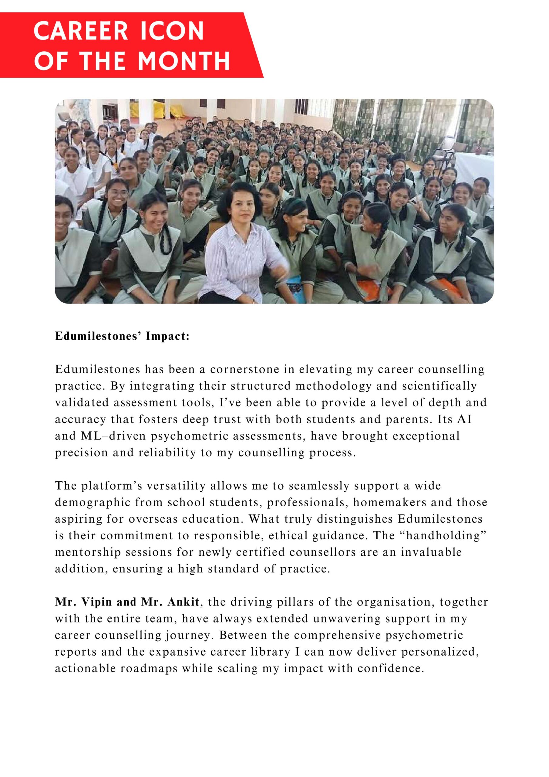• Engages in CSR projects to make quality career guidance accessible to all.